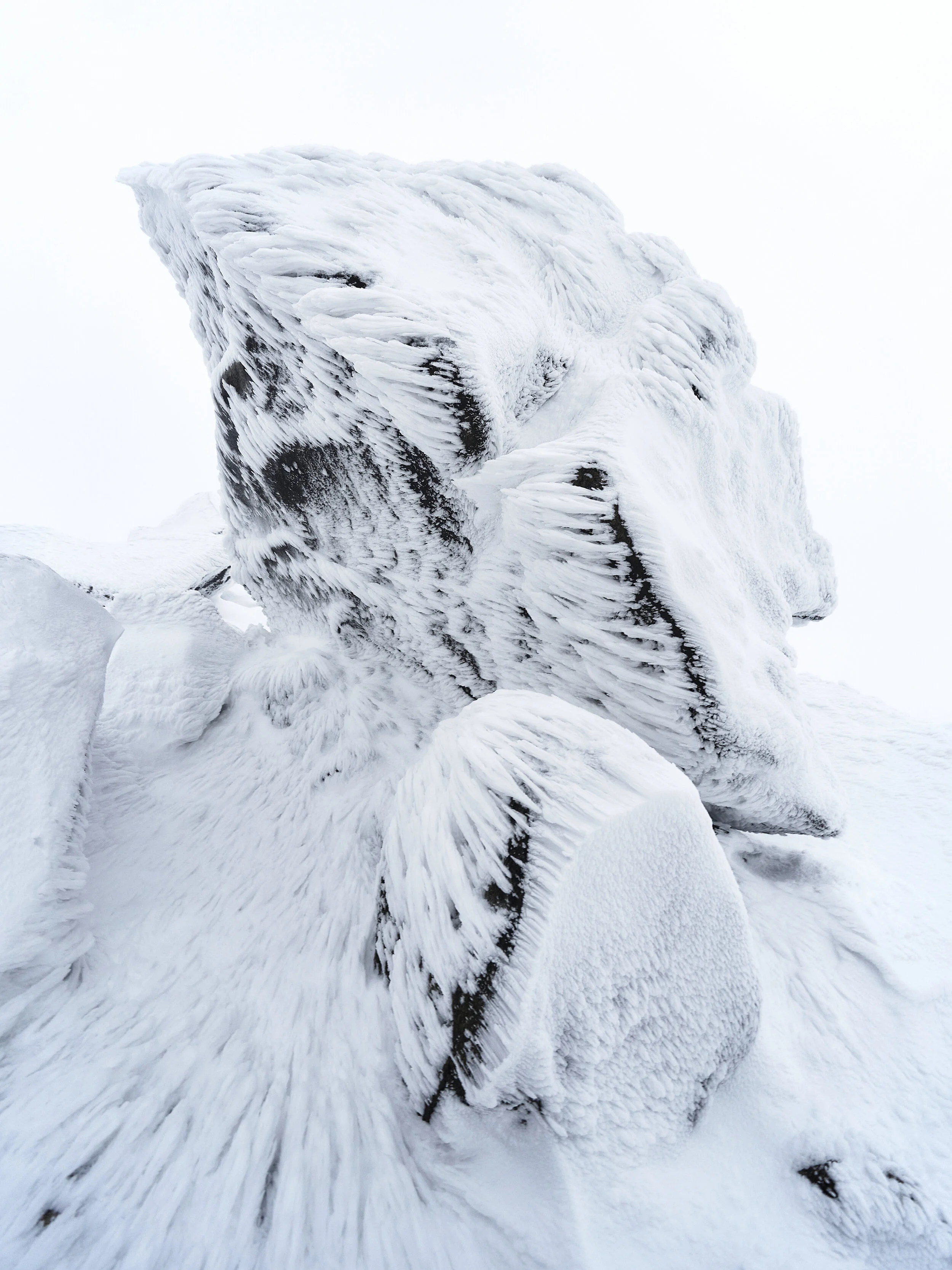 I was striding through hip-deep snowdrifts, sliding on black ice, and persevering the cold but fun blizzards. Zero Visibility, Zero People and definitely Below Zero Degrees, however, there were many photo opportunities to be had. Taking shelter behind a huge boulder from the exposure of high winds and driving snow which felt like sharp ice, I took my camera off from the tripod and decided I would go handheld. Diving out of the shelter I was immediately pushed back by the chilling gusts, I shot everything I could see insight, yes, not the usual approach to my photography but there wasn't a choice as I was fighting time as the sun had already set and I was conscious about the amount of time I was exposing my camera to the harsh unforgiving elements. Many photos later I tucked into a small gap between two large frozen rocks to get the right angle for this shot. I can't tell you how much winter excites me every year with the ice, snow and frost all amazing elements to see especially when they gather over many days and weeks to build up to create horizontal shards of ice crystals that wrap around the rocks like a cloak.